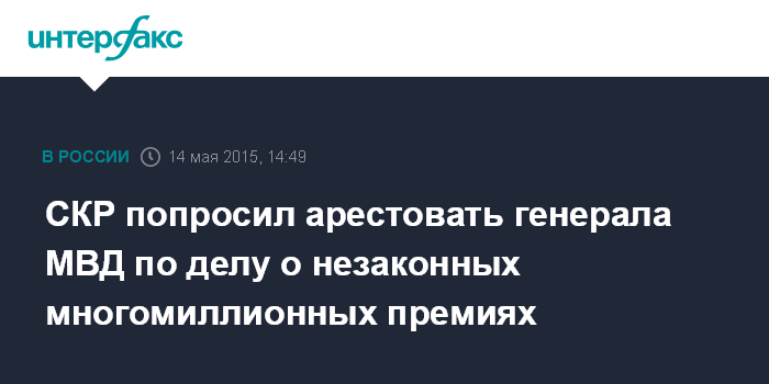 СКР попросил арестовать генерала МВД по делу о незаконных многомиллионных премиях