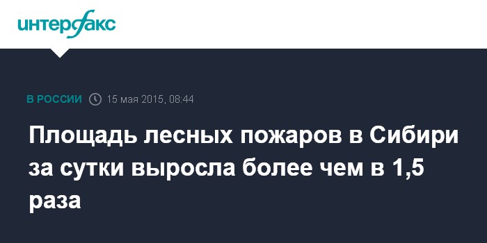 Москва. 15 мая. INTERFAX.RU - Площадь лесных пожаров в Сибири, по данным на утро пятницы, составляет 38 тыс. 38,9 га, зарегистрировано 103 лесных пожара, сообщает департамент лесного хозяйства по СФО.
