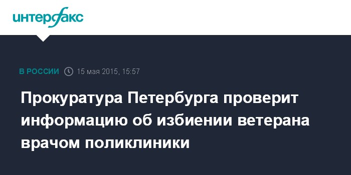 Москва. 15 мая. INTERFAX.RU - Прокуратура начала проверку по сообщению об избиении женщина-ветерана сотрудниками петербургской поликлиники прямо в стенах учреждения.