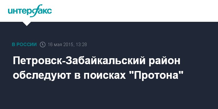 Москва. 16 мая. INTERFAX.RU - В Петровск-Забайкальском районе Забайкальского края планируется привлечь авиацию для поиска ракеты-носителя "Протон", сообщил "Интерфаксу" в субботу глава районной администрации Андрей Кузнецов.