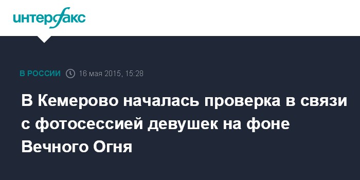 Москва. 16 мая. INTERFAX.RU - Кемеровская полиция проводит проверку по факту фотосессии на фоне Вечного Огня в городе Кемерово, сообщает пресс-служба регионального ГУ МВД в субботу.