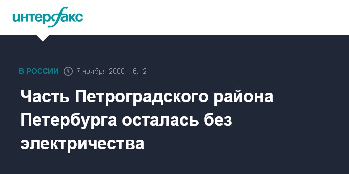 Москва. 7 ноября. INTERFAX.RU - Часть потребителей Петроградской стороны в Петербурге отключена от электроснабжения из-за повреждения распределительной сети 35 кВ, сообщили "Интерфаксу" в пресс-службе "Ленэнерго".