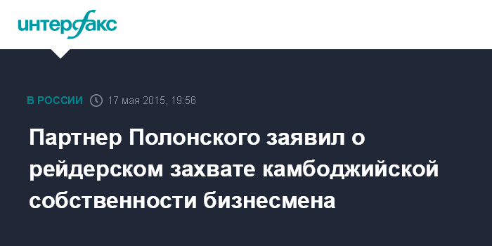 Партнер Полонского заявил о рейдерском захвате камбоджийской собственности бизнесмена