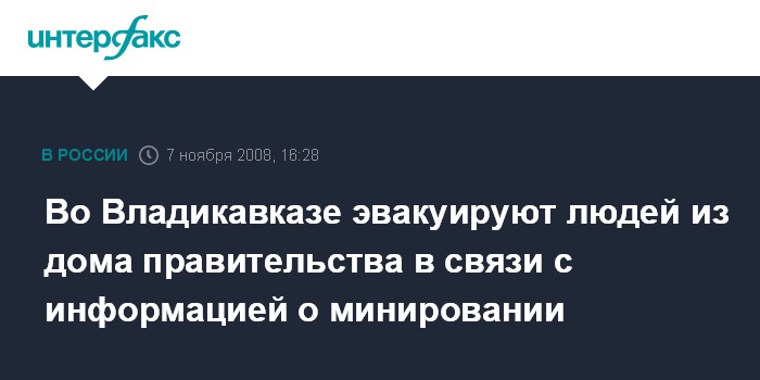 Москва. 7 ноября. INTERFAX.RU - Из дома правительства Северной Осетии идет эвакуация людей в связи с информацией о минировании, сообщил "Интерфаксу" источник в правоохранительных органах республики.