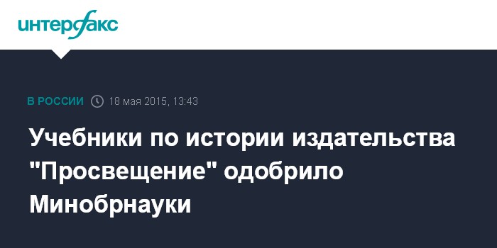 "15 мая 2015 года состоялось заседание Научно-методического совета по учебникам при министерстве образования и науки Российской Федерации, на котором единогласно было принято решение включить линию учебников по истории России Издательства "Просвещение" для учащихся 6-10 классов в Федеральный перечень учебников", - говорится в сообщении.