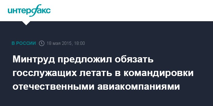 Москва. 18 мая. INTERFAX.RU - Минтруд РФ подготовил проект президентского указа, который обяжет госслужащих при оформлении командировок приобретать билеты у российских авиакомпаний.