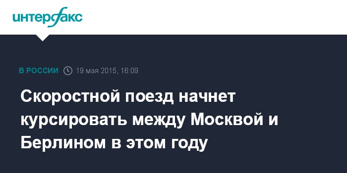 Москва. 19 мая. INTERFAX.RU - РЖД в этом году запустит скоростной поезд "Москва-Берлин", сообщили в компании.