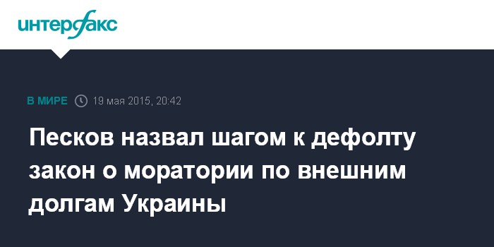 Песков назвал шагом к дефолту закон о моратории по внешним долгам Украины