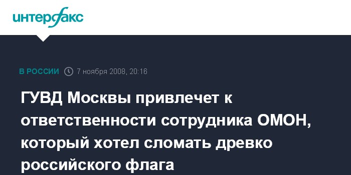5 ноября в ряде средств массовой информации, блогах и на форумах появилась фото- и видеоинформация о том, что накануне, в День народного единства, сотрудник московского ОМОН пытался сломать древко флага Российской Федерации.