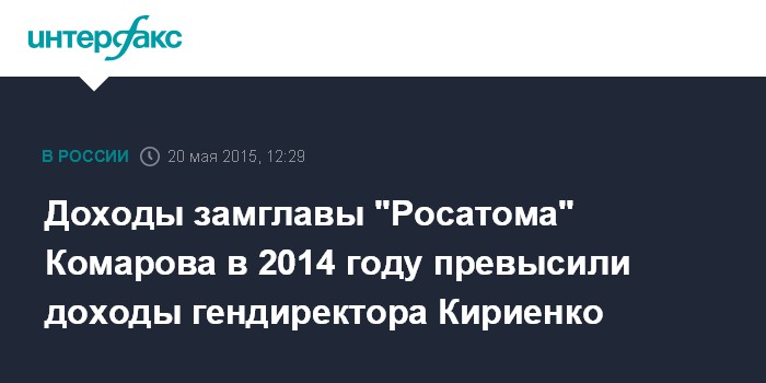 Доходы замглавы "Росатома" Комарова в 2014 году превысили доходы гендиректора Кириенко