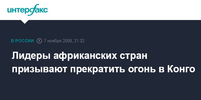 Москва. 7 ноября. NTERFAX.RU - Лидеры африканских стран призвали к немедленному прекращению огня в Демократической республике Конго (ДРК) и к усилению полномочий миротворцев ООН, передает в пятницу британская телерадиокорпорация Би-Би-Си.