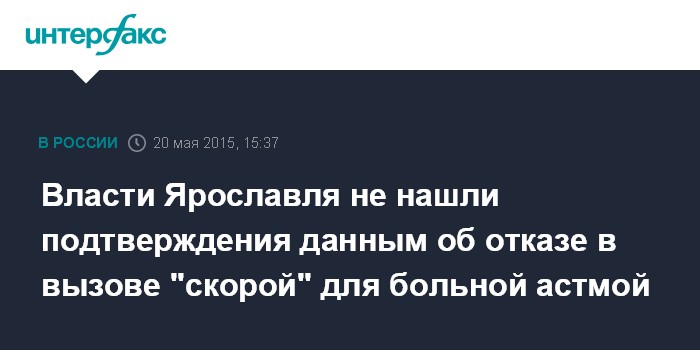 Власти Ярославля не нашли подтверждения данным об отказе в вызове "скорой" для больной астмой