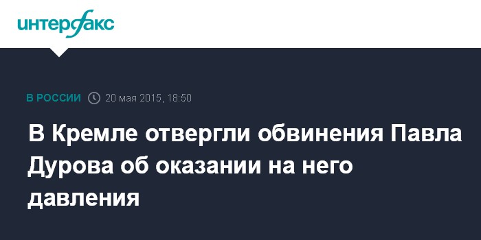 Москва. 20 мая. INTERFAX.RU - Пресс-секретарь президента России Дмитрий Песков опроверг утверждения основателя сети "Вконтакте" Павла Дурова о том, что Кремль якобы "отобрал" у него компанию и что тот вынужден был уехать из Москвы из-за давления Кремля, требовавшего закрыть страницы оппозиционера Алексея Навального.