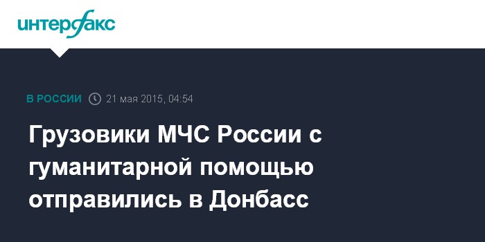 Москва. 21 мая. INTERFAX.RU - Автомобильная колонна МЧС России с гуманитарной помощью отправилась в Донбасс, сообщили в Национальном центре управления в кризисных ситуациях (НЦУКС).