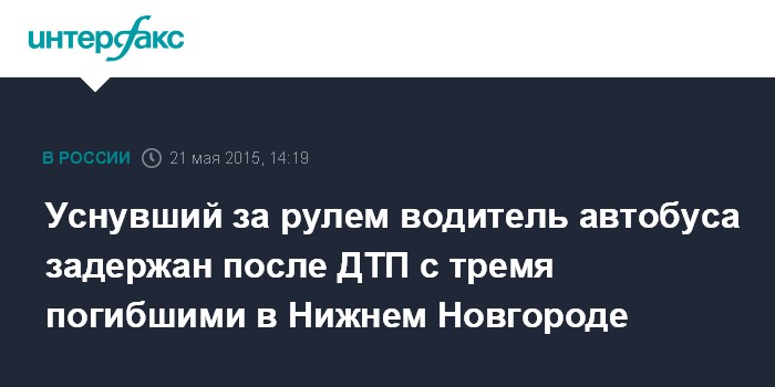 Москва. 21 мая. INTERFAX.RU - Водитель автобуса Mercedes задержан после крупного ДТП в Нижегородской области, в котором три человека погибли, еще 17 были доставлены в больницу, сообщил ио руководителя регионального СУ СКР Андрей Виноградов на брифинге в четверг.