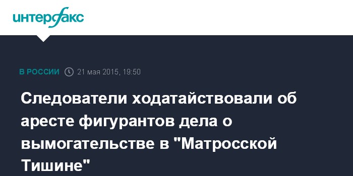 Москва. 21 мая. INTERFAX.RU - Рассмотрение ходатайств об избрании меры пресечения в отношении фигурантов дела о вымогательстве сотрудниками СИЗО "Матросская Тишина" у арестованных по преступлениям экономической направленности пройдет в закрытом режиме.