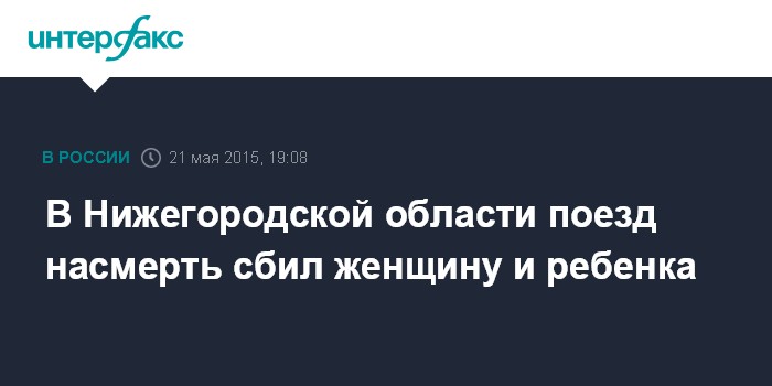 Москва. 21 мая. INTERFAX.RU - Следственные органы выясняют обстоятельства гибели женщины и семилетней девочки под колесами поезда в Нижегородской области в четверг, сообщает Приволжское СУ СКР на транспорте.