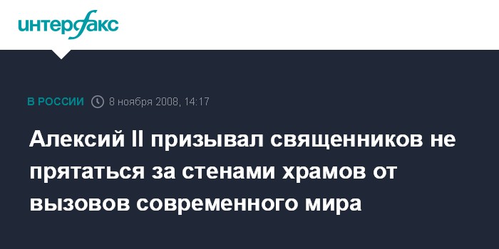 Алексий II призывал священников не прятаться за стенами храмов от вызовов современного мира