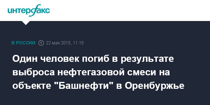 Москва. 22 мая. INTERFAX.RU - Сотрудники нефтесервисного холдинга "Таргин" - подрядчика "Башнефти" - пострадали при выбросе нефтегазовой смеси на месторождении "Башнефти" в Оренбургской области.