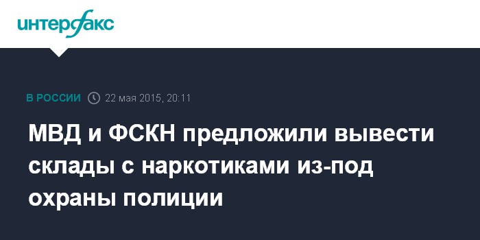 Москва. 22 мая. INTERFAX.RU - МВД и ФСКН России совместно разработали проект приказа, предусматривающего исключение складов хранения наркотических и психотропных веществ госорганов из перечня объектов, подлежащих обязательной охране полицией, сообщает сайт МВД РФ.