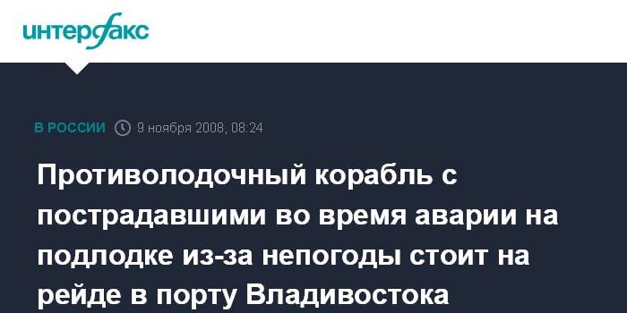 Пострадавших во время аварии уже эвакуировали на борт противолодочного корабля "Адмирал Трибуц". Он подошел к Владивостоку и стоит на рейде, но из-за сложных погодных условий причалить к берегу пока не может. В море шторм, высота волн достигает четырех метров.