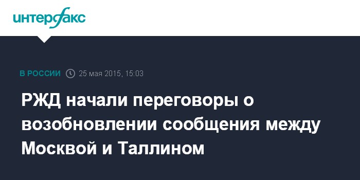 Москва. 25 мая. INTERFAX.RU - ОАО "Российские железные дороги" ведет переговоры о возобновлении железнодорожного сообщения между Москвой и Таллином с расширением маршрута в Петербург, сообщил журналистам вице-президент РЖД, генеральный директор АО "Федеральная пассажирская компания" (ФПК) Михаил Акулов в Петербурге в понедельник.