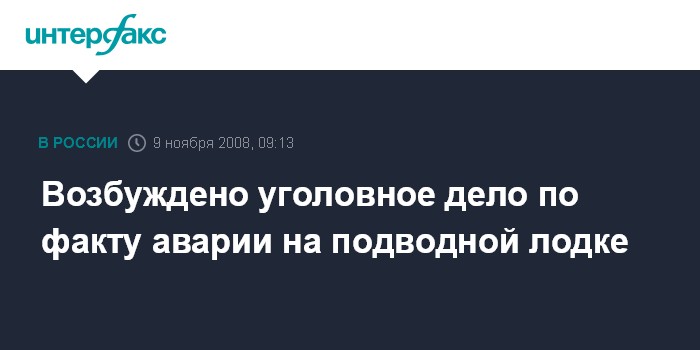 Москва. 9 ноября. INTERFAX.RU - По факту происшествия на подводной лодке Тихоокеанского флота, в результате которого погибло 20 человек, Следственный комитет при прокуратуре (СКП) РФ возбудил уголовное дело.