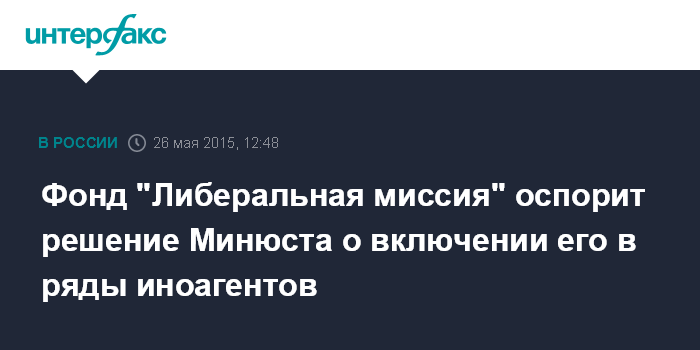 Москва. 26 мая. INTERFAX.RU - Фонд теоретических и прикладных исследований "Либеральная миссия" оспорит в суде решение Минюста о включении организации в перечень НКО - иностранных агентов, сообщил "Интерфаксу" во вторник основатель фонда, научный руководитель Высшей школы экономики Евгений Ясин.