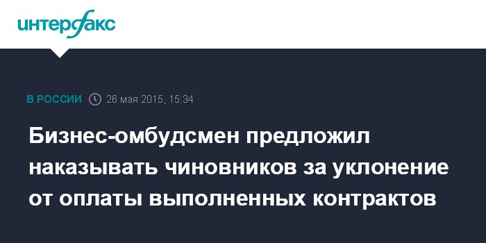 Бизнес-омбудсмен предложил наказывать чиновников за уклонение от оплаты выполненных контрактов