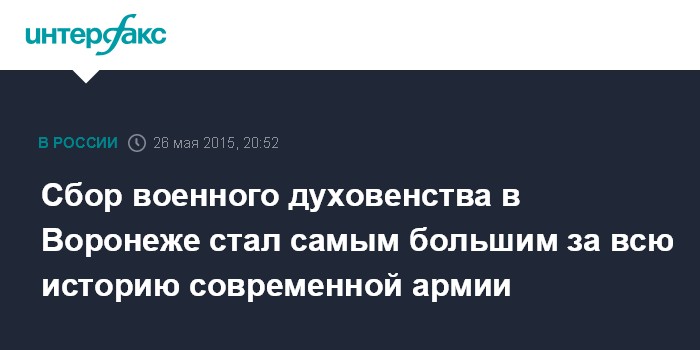По его словам, 26 мая 155 священнослужителей встретились на пятом учебно-методическом сборе с должностных лицами по работе с верующими военнослужащими ВС РФ в Военно-воздушной академии имени Жуковского и Гагарина в Воронеже, это самый крупный сбор военных священнослужителей за всю современную историю вооруженных сил России. Одной из задач сбора стало подведение итогов и анализ работы с верующими военнослужащими, сказал генерал.