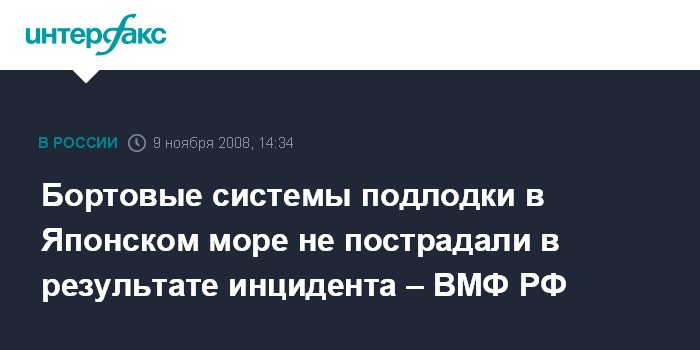 Москва. 9 ноября. INTERFAX.RU - Инцидент на российской атомной подлодке в Японском море не привел к повреждению бортовых систем и технических устройств, заявил главнокомандующий ВМФ Владимир Высоцкий.