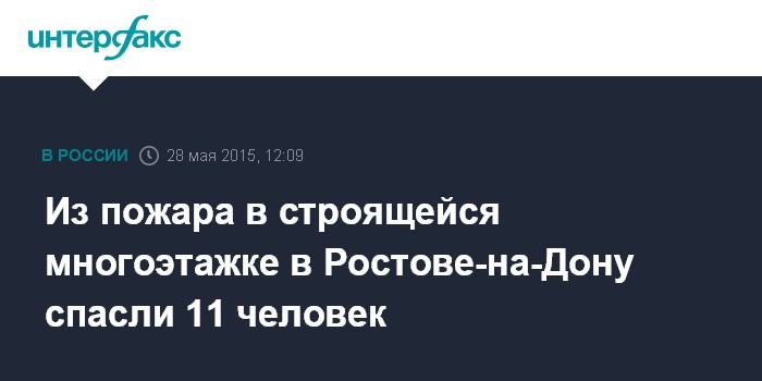 Москва. 28 мая. INTERFAX.RU - Пожарные ликвидировали возгорание в 16-этажном строящемся здании в центре Ростова-на-Дону, сообщили в четверг агентству "Интерфакс" в пресс-службе ГУ МЧС России по региону. Из многоэтажки эвакуированы 100 человек, спасены 11 человек.
