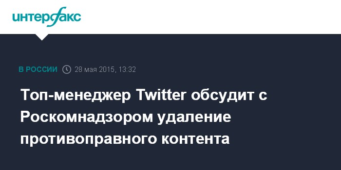 Москва. 28 мая. INTERFAX.RU - Один из руководителей американской компании Twitter в четверг встретится с представителем Роскомнадзора и обсудит законы о блогерах и персональных данных.