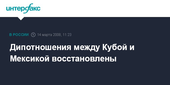 Гавана. 14 марта. INTERFAX.RU - Мексика и Куба в полном объеме восстановили дипломатические отношения. Об этом объявили главы МИД Кубы Фелипе Перес Роке и Мексики Патрисиа Эспиноса.