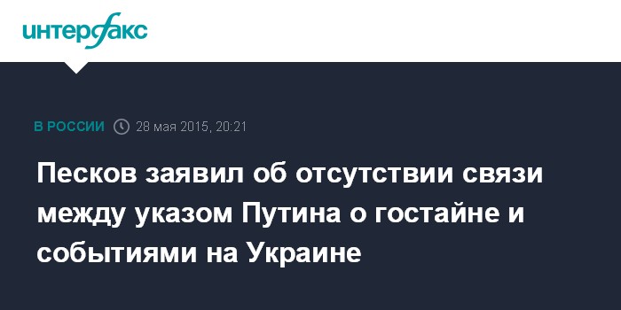В ходе общения с журналистами в четверг Пескову был задан вопрос, не связан ли этот закон с событиями на Украине и не означают ли такие изменения то, что президент РФ Владимир Путин намерен санкционировать проведение каких-либо спецопераций на территории Украины.