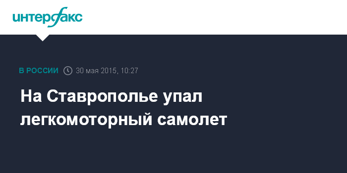 Москва. 30 мая. INTERFAX.RU - Легкомоторный самолет упал неподалеку от Ставрополя, сообщил в субботу "Интерфаксу" руководитель пресс-службы ГУ МЧС по Ставрополью Олег Дегтярев.