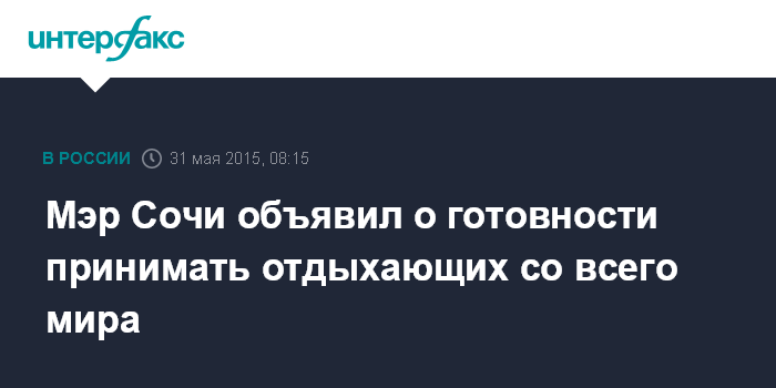 Мэр Сочи объявил о готовности принимать отдыхающих со всего мира