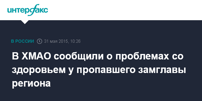 В ХМАО сообщили о проблемах со здоровьем у пропавшего замглавы региона