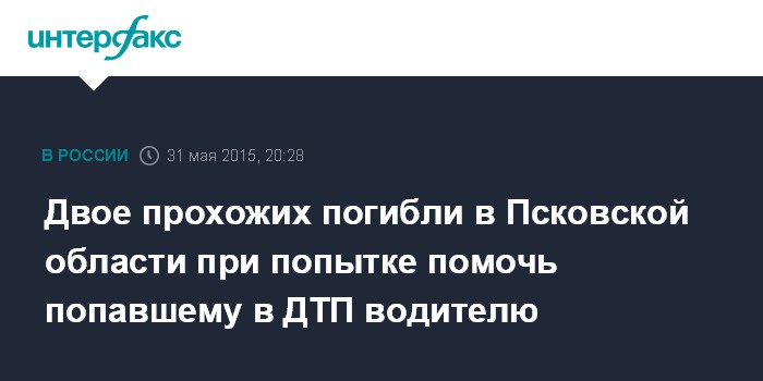 Москва. 31 мая. INTERFAX.RU - Два человека погибли от поражения электрическим током, спасая водителя машины "Ауди А6", врезавшегося в воскресенье утром в опору линии электропередачи в городе Дно Псковской области.