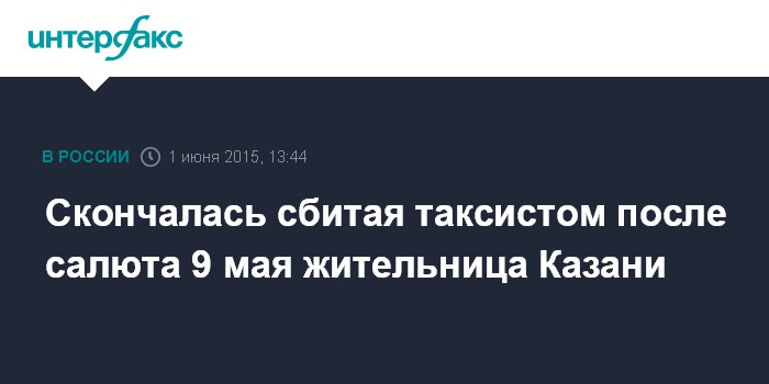 Скончалась сбитая таксистом после салюта 9 мая жительница Казани