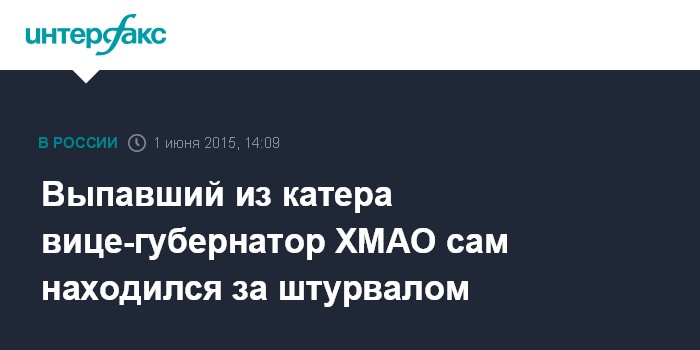 Москва. 1 июня. INTERFAX.RU - Выпавший из катера во время речной прогулки заместитель губернатора Ханты-Мансийского автономного округа Виталий Ермошин, поиски которого ведутся третий день, сам управлял судном, сообщили "Интерфаксу" в понедельник в пресс-службе Уральского следственного управления на транспорте СК РФ.