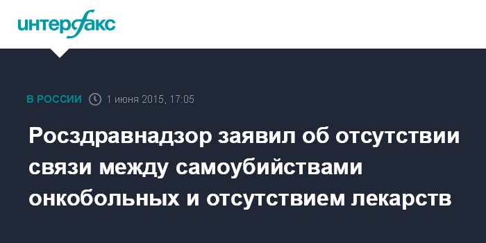 Росздравнадзор заявил об отсутствии связи между самоубийствами онкобольных и отсутствием лекарств