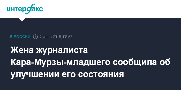 Москва. 2 июня. INTERFAX.RU - Состояние здоровья госпитализированного журналиста Владимира Кара-Мурзы-младшего улучшается, сообщила его жена Евгения.
