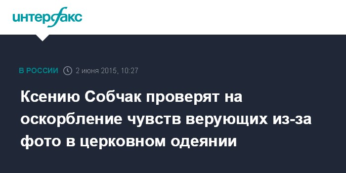 Москва. 2 июня. INTERFAX.RU - Главное управление СКР по Москве проводит в отношении телеведущей Ксении Собчак проверку на предмет оскорбления чувств верующих, сообщил инициатор проверки - председатель профсоюза сотрудников ОВД Татарстана, юрист Ярослав Михайлов.
