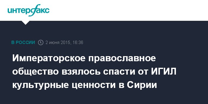Императорское православное общество взялось спасти от ИГИЛ культурные ценности в Сирии