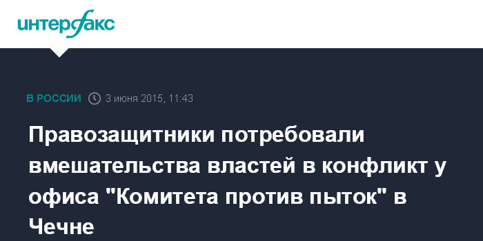 Москва. 3 июня. INTERFAX.RU – Ведущие российские правозащитники выразили обеспокоенность нападением неизвестных на офис "Комитета против пыток" в Грозном и потребовали от властей вмешаться в конфликт.