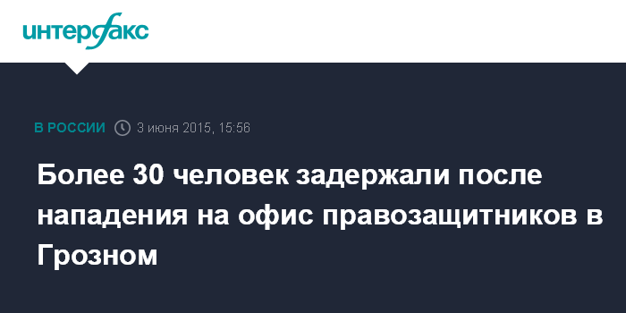 Москва. 3 июня. INTERFAX.RU - После нападения на офис "Комитета против пыток" в Грозном задержаны и доставлены в УВД МВД по городу Грозному более 30 человек, сообщил "Интерфаксу" замминистра внутренних дел по Чеченской республики Апти Алаудинов .