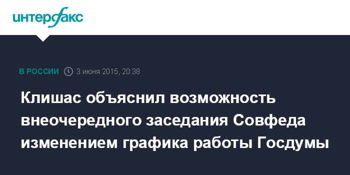 "Поэтому наше заседание проходит раз в две недели. С учетом того, что в июне будут праздничные дни, связанные с Днем России, может получиться не две недели, а три недели, поскольку, возможно, изменится график работы Госдумы в связи с этим", - пояснил Клишас.