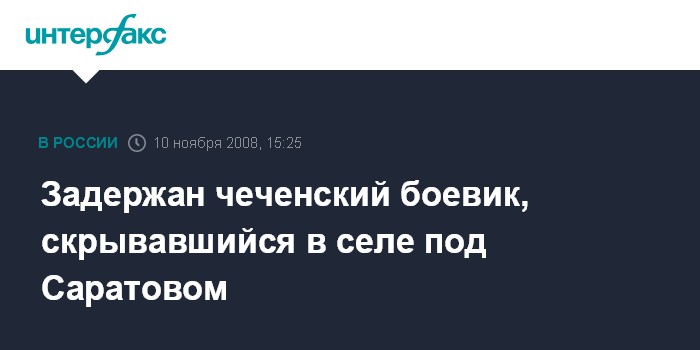 Москва. 10 ноября. INTERFAX.RU - Сотрудники УФСБ России по Саратовской области задержали в минувшие выходные в Базарно-Карабулакском районе области члена бандформирования, действовавшего на территории Чеченской республики, и скрывавшегося в поволжском регионе.