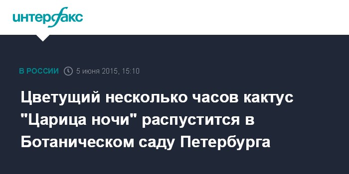 Цветущий несколько часов кактус "Царица ночи" распустится в Ботаническом саду Петербурга